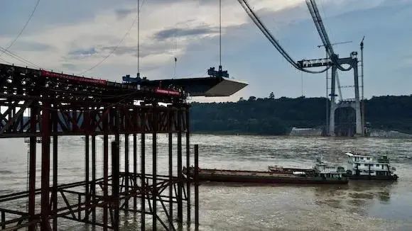 江津白沙長江大橋首節(jié)鋼箱梁吊裝成功,今年有望建成通車