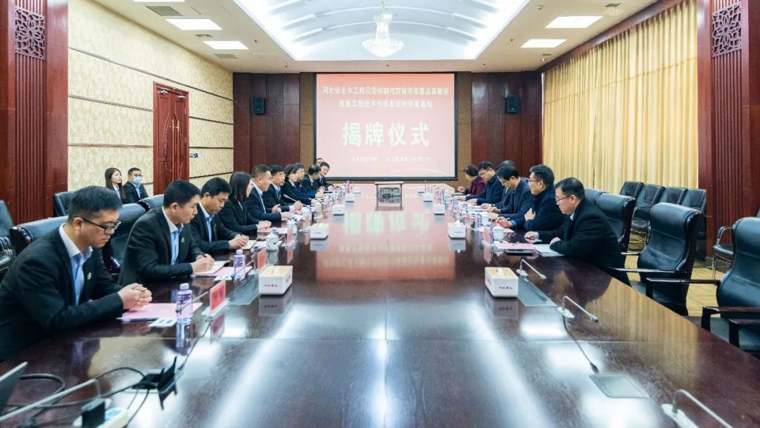 華北科技學院校長張瑞新、副校長顧秀根、組織部部長韓國波、行政辦公室主任尚闖紅及建筑工程學院院長張麗華、河北省土木工程災變控制與災害應急重點實驗室主任秦杰,巨力索具董事長楊建國、常務副總裁李彥英、副總裁劉冠軍、劉洪偉、賈麗娜及公司核心技術骨干等人出席揭牌儀式并就合作情況展開座談。